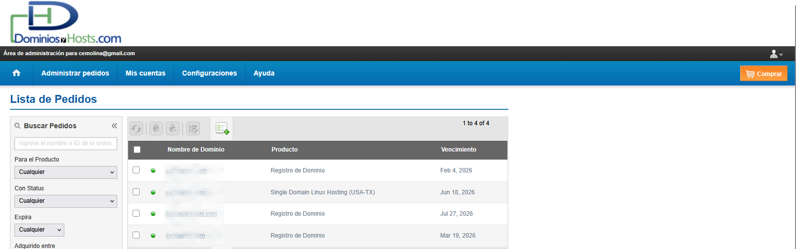 Podemos acceder al cPanel, dando click en el dominio del hosting que queremos acceder.