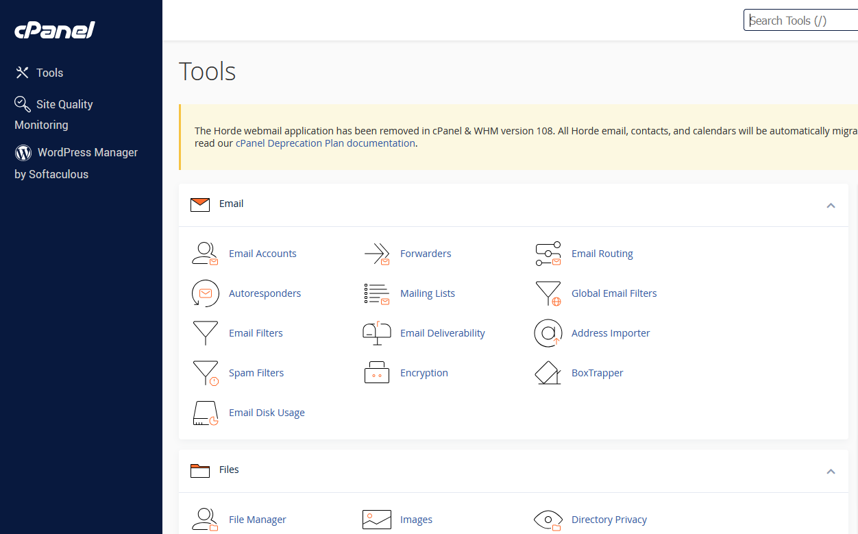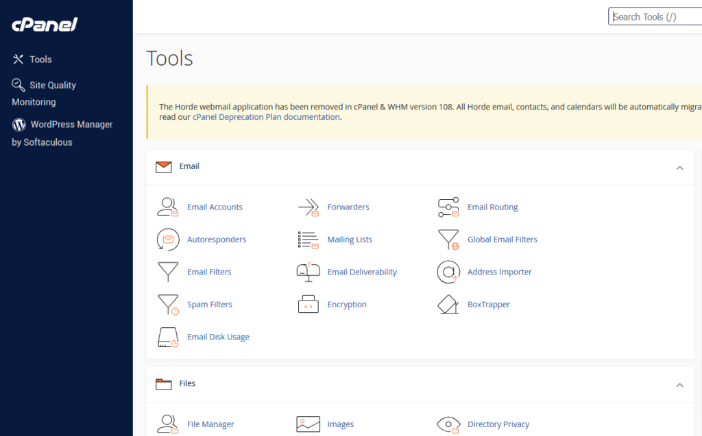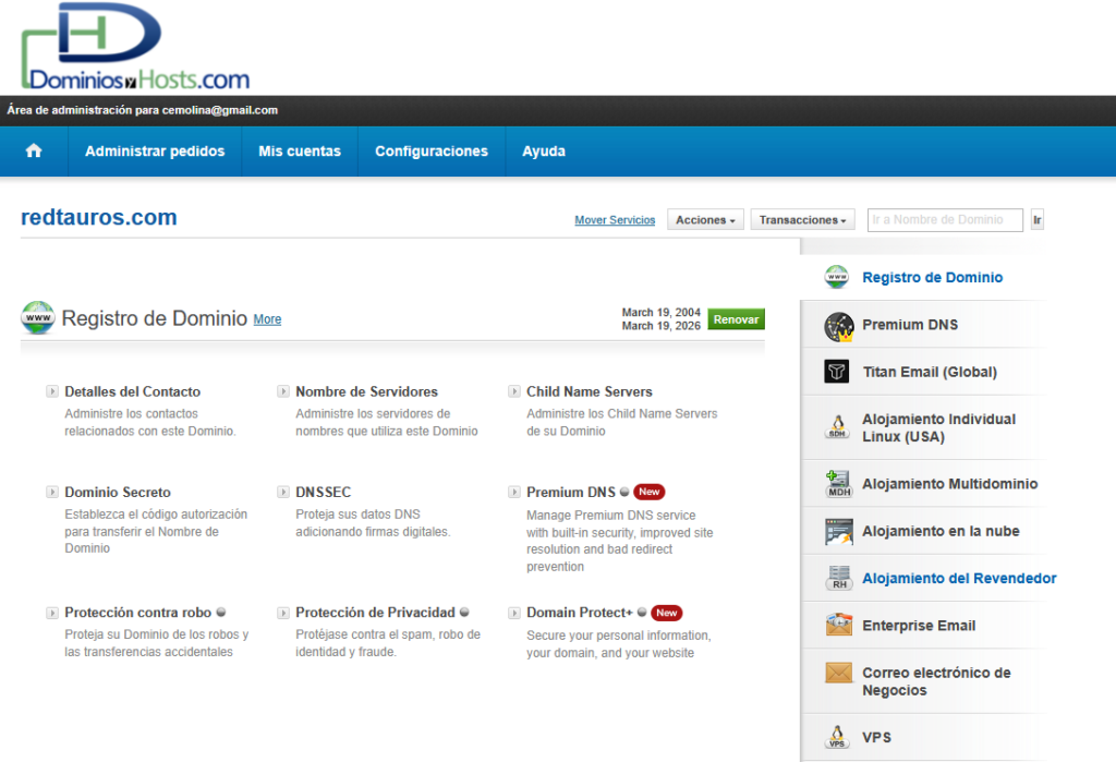 Damos click en Gestionar Alojamiento Web y Bienvenido a nuestro cPanel.