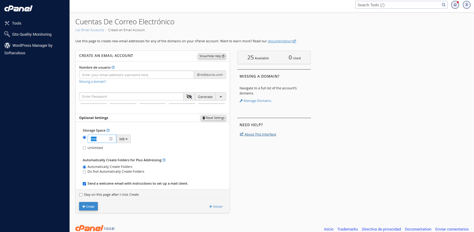 Como crear un correo con cPanel