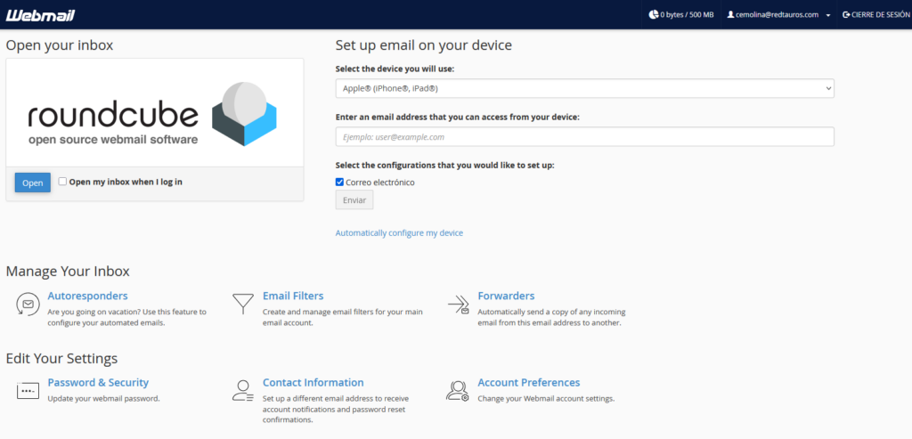 Y seleccionamos roundcube para visualizar los correos.